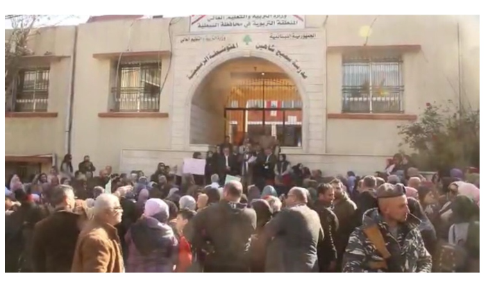 نفذ الأساتذة المتعاقدون والملاك في القطاعات التربوية الرسمية كافة (مهني – ثانوي – أساسي)، اعتصاما حاشدا ظهر اليوم ،أمام مبنى المنطقة التربوية في مدينة النبطية ، بدعوة من روابط التعليم الرسمي في محافظتي الجنوب والنبطية ، احتجاجا على “مماطلة المعنيين في تلبية مطالبهم المحقة ودفاعا عن القطاع الرسمي من الانهيار، ولمطالبة المعنيين بإنصافهم والاسراع في إيجاد الحلول لمطالبهم كافة، وإعطائهم حقوقهم كاملة بهدف تمكينهم من العيش بكرامة ولعودتهم وطلابهم الى مدارسهم” .