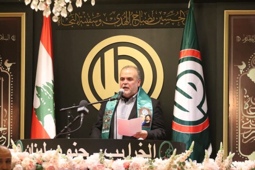 كلمة حركة امل القاها الاخ خليل حمدان الذي اكد على ان احياء ذكرى شهداء المنطقه الخامسة لحركة امل كما هم جميع الشهداء الذين شكلوا لنا حاضراً لمتابعة الدرب فهم احياء في الدنيا والاخرة حيث وعد الله سبحانه وتعالى في الاية الكريمة “ولا تحسبن الذين قتلوا في سبيل الله امواتا بل احياء عند ربهم يرزقون”، وهم احياء في الدنيا طالما بقيت الراية خفاقة ليستبشروا بالذين لم يلحقوا بهم واستحضر كلام الامام مغيب القائد السيد موسى الصدر في يوم شهيد امل (ايتها الارواح الطاهرة نقف امامكم بخشوع وانتم تستبشرون بالذين لم يلحقوا بكم مقدرين فضلكم الدائم اولا واخيرا.)