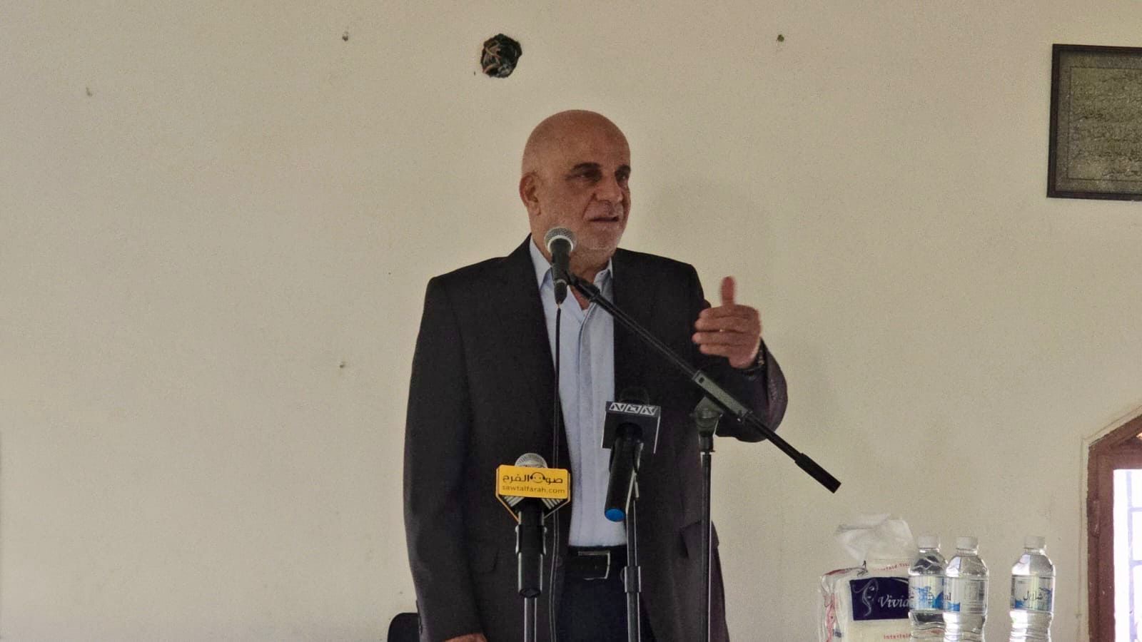 كلامه جاء خلال إحياء ثالث المرحوم مصطفى عبد الله الداود (رئيس بلدية البرغلية سابقاً) في بلدة البرغلية.