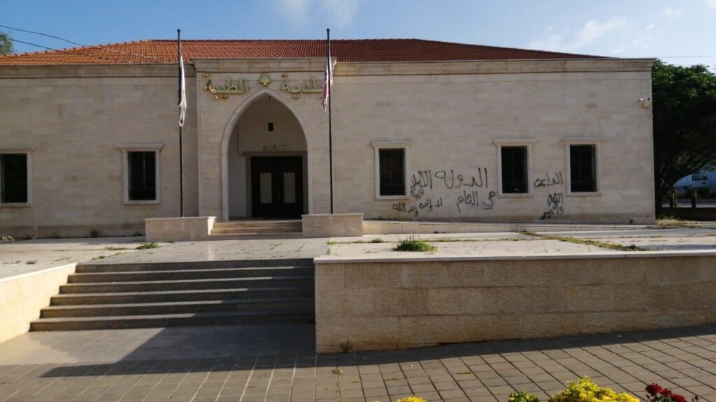 استيقظ اهالي بلدة الطيبة اليوم ليجدوا عبارات تحمل شعارات تنظيمات ارهابية داعشية مكتوبة على جدران بلدية الطيبة وحائط المدرسة.
