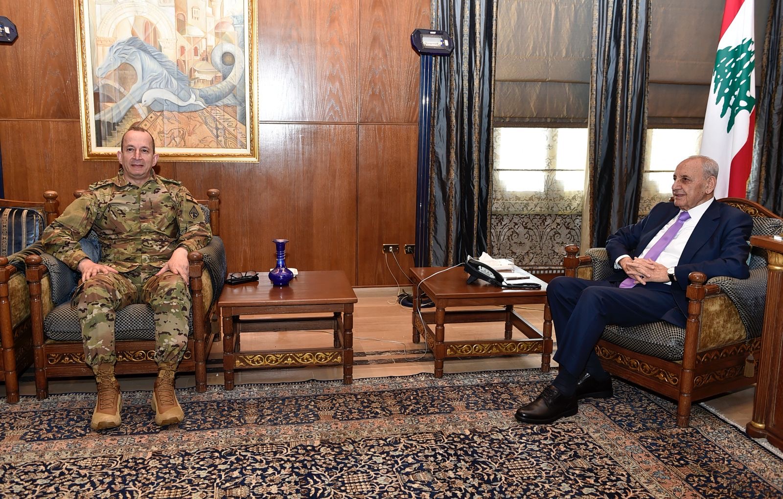 الرئيس بري أستقبل أيضا قائد الجيش العماد رودولف هيكل الذي وضع رئيس المجلس باجواء ونتائج زياراته الخارجية إلى المملكة العربية السعودية ومشاركته في مؤتمر الأمن في ميونيخ اضافة الى التحضيرات لمؤتمر دعم الجيش ، اللقاء كان مناسبة ايضا لعرض تطورات الاوضاع لاسيما الامنية منها والمستجدات الميدانية على ضوء مواصلة إسرائيل لإعتداءاتها على لبنان .